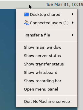 In the client, the keyboard and NoMachine icons on the panel are not visible usually. I can make them visible by making some changes to the Panel properties. They then look like this: