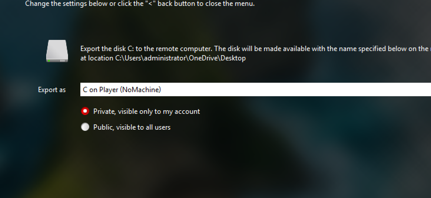 2. If I want to share a drive privately it wants to map it to c:\users\administrator\……