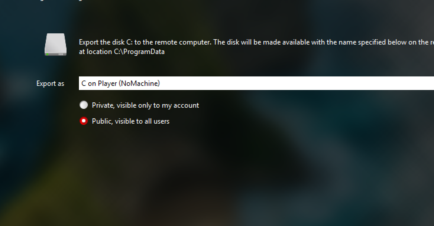 3. If I want to share the drive publicly it wants to map it to c:\programdata
